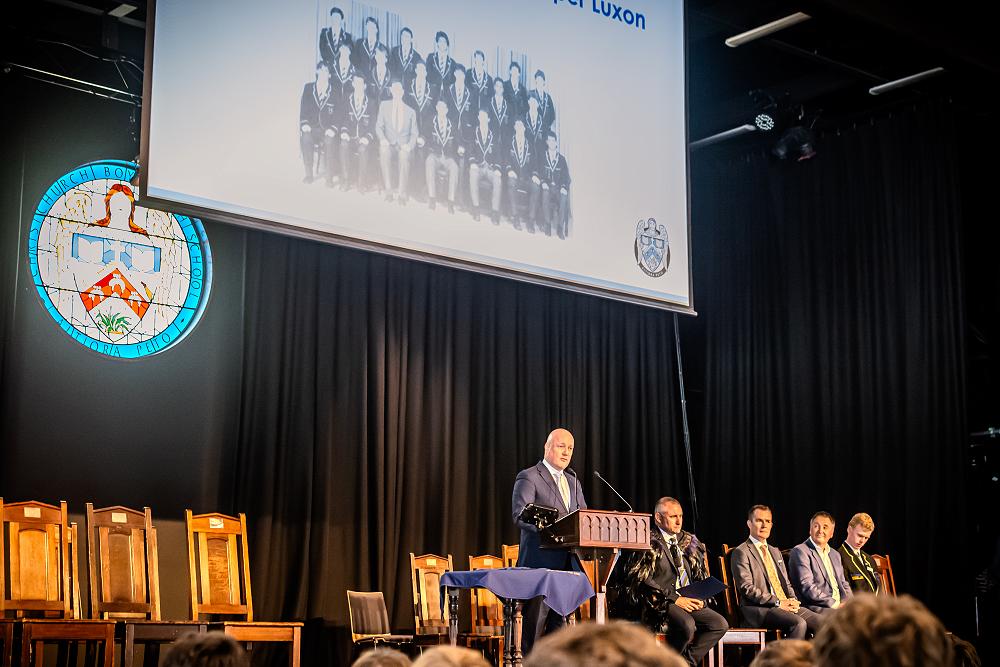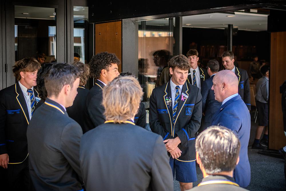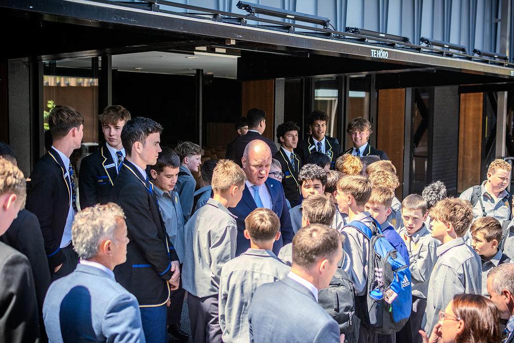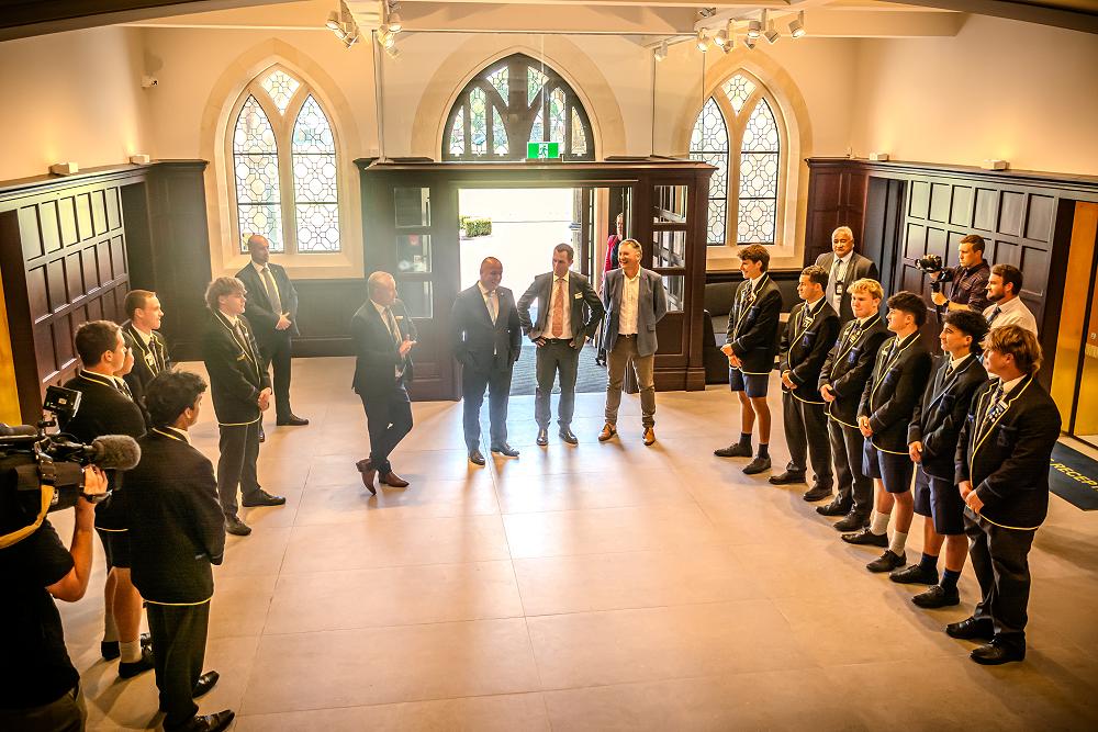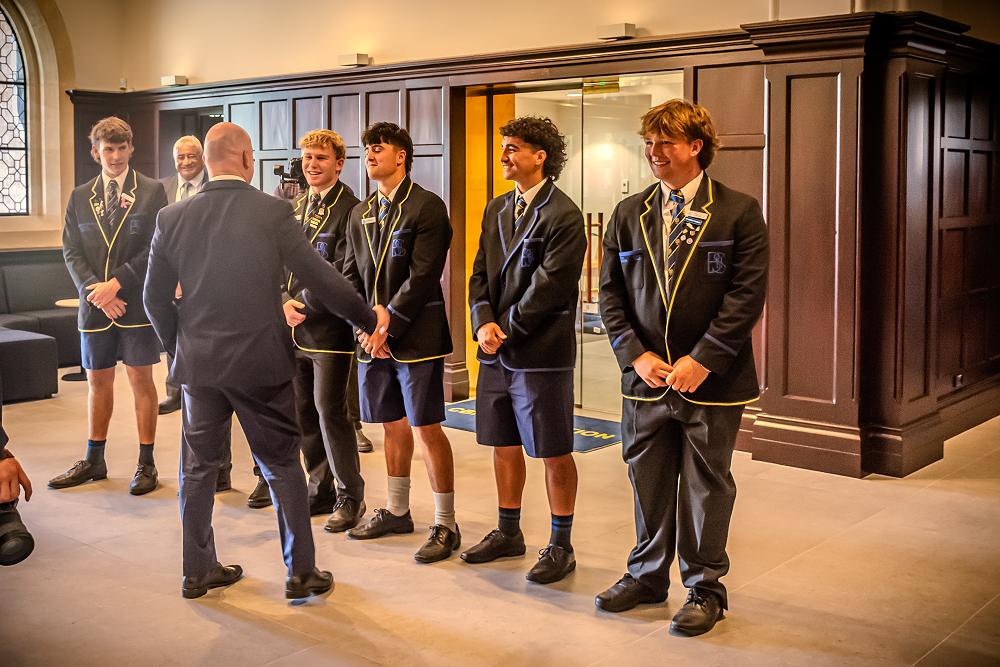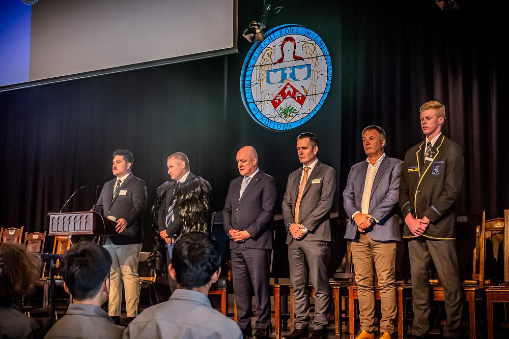 On Wednesday, 5 February the Prime Minister, The Right Honourable, Christopher Luxon (an old boy of CBHS) visited School to speak to Year 9 students at Assembly, meet the Monitors and have a tour of the Main Block. The Prime Minister was accompanied by another old boy, Dr Hamish Campbell, MP for Ilam.